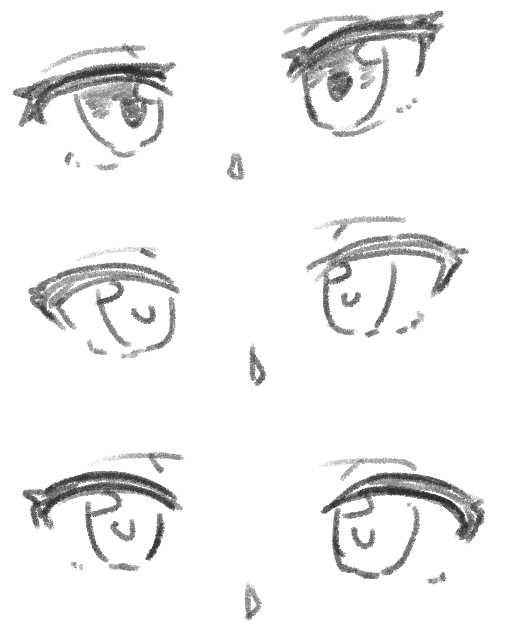 落胆や慈愛などの感情が表せます。こちらもふたえの幅を意識して描くと描き分けし易いと思います。