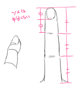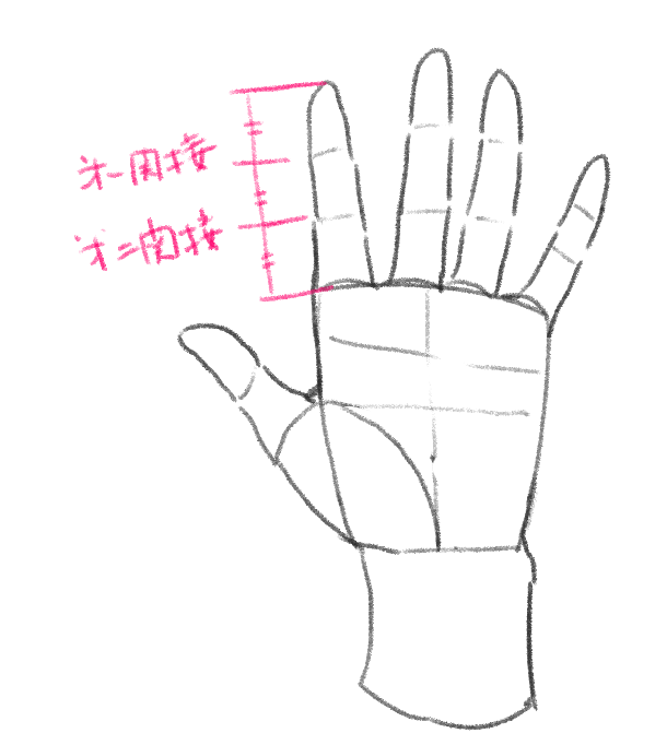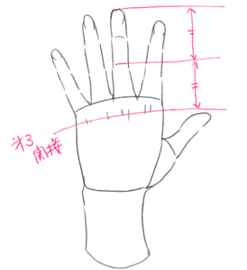 指の長さの違いと各関節の比率を意識してください。