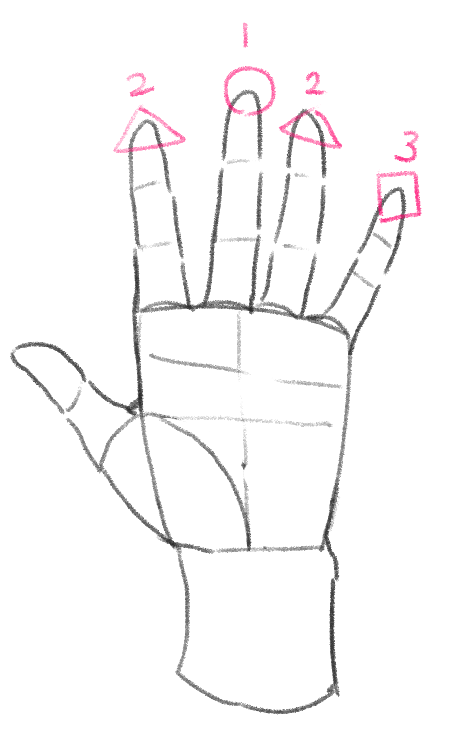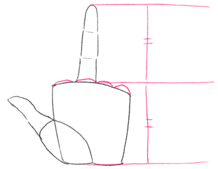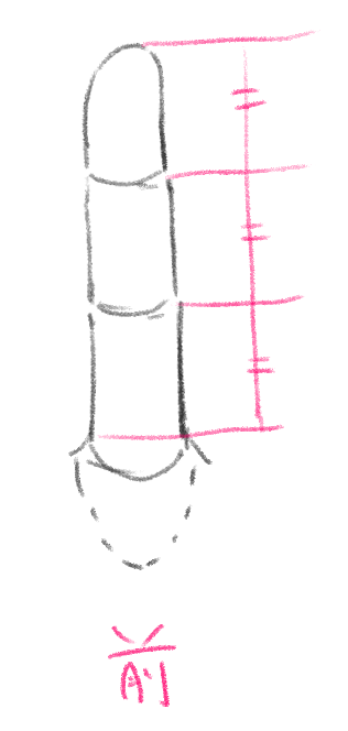 長さの指標としては中指が一番わかりやすいので中指から描いていきます。