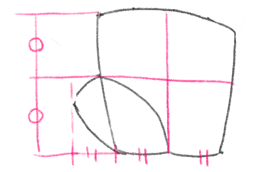 アタリは長さの比率だけ意識して、ざっくり四角などの簡単な図形で描きましょう。
