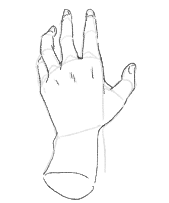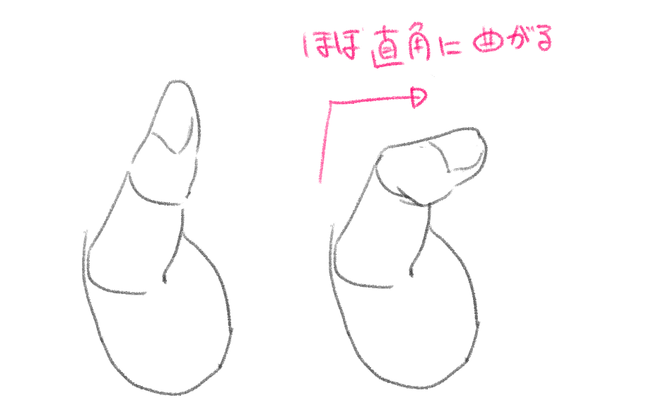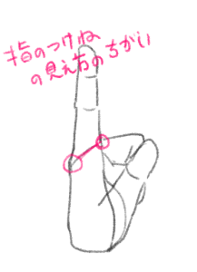 第二関節の描き方に注目してください。人差し指と小指は曲がる位置が変わってきます。
