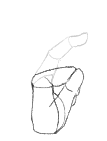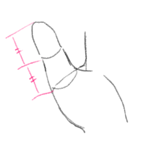 注目してほしいのは指の描き方です。手が揃えられているときは、アタリはこのようにまとめて描きましょう。