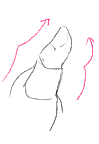 横から見た時は前を曲線にして後ろを直線にしてメリハリをつけると自然になります。