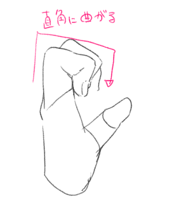 最後に完全に曲げたときも描いてみましょう。関節はほぼ直角に曲げることができます。