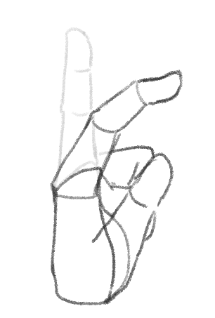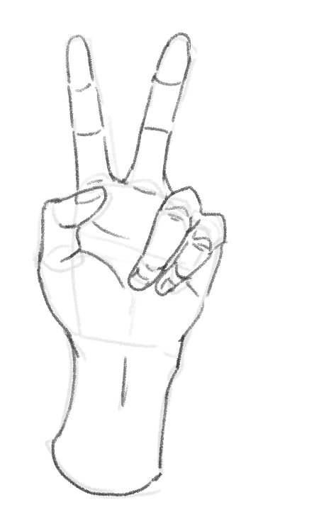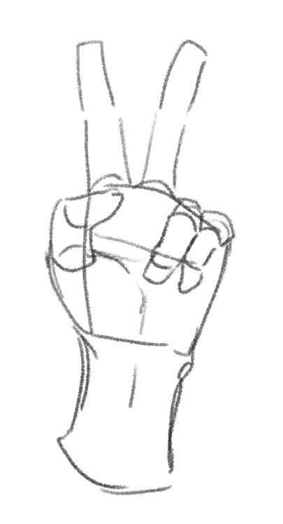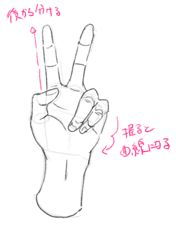 次は人差し指と中指を立ててピース✌しているポーズを描きましょう。イラストだとよく見ますね。