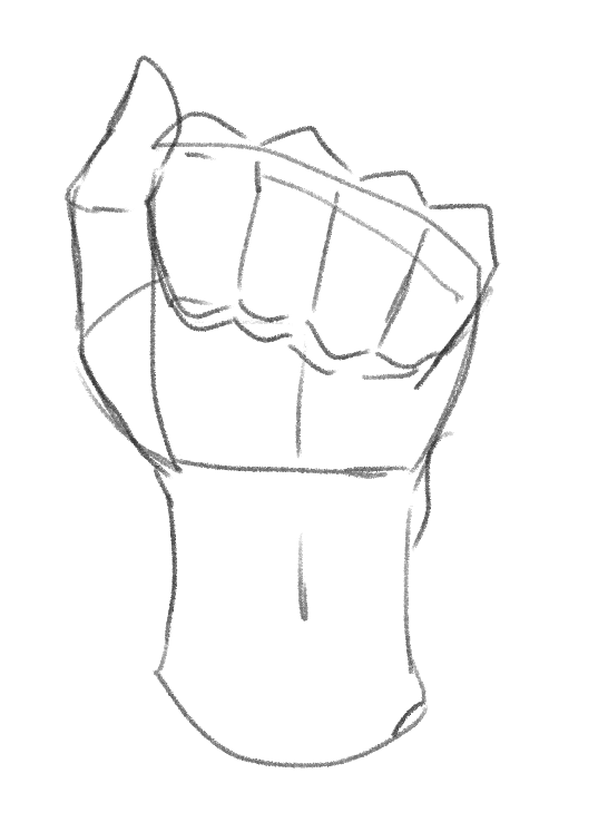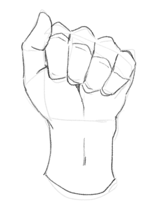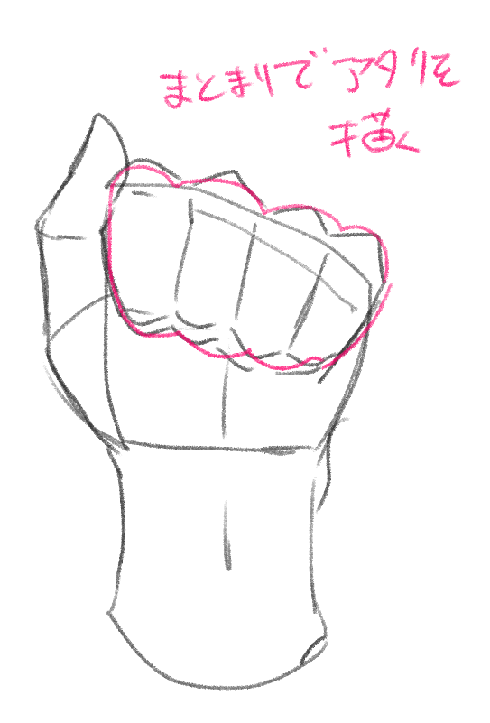 最後にすべての指を曲げた状態、拳のポーズを描いてみましょう