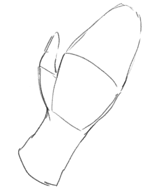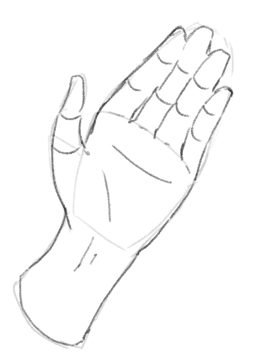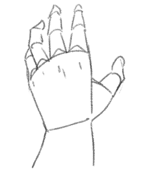 指を揃えた手刀のような手を描いてみましょう。まずはアタリです